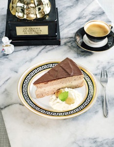 - Für die Füllung das Maronipüree mit dem Rum glatt rühren. Schlagobers mit Sahnesteif aufschlagen und dem Maronipüree unterheben.